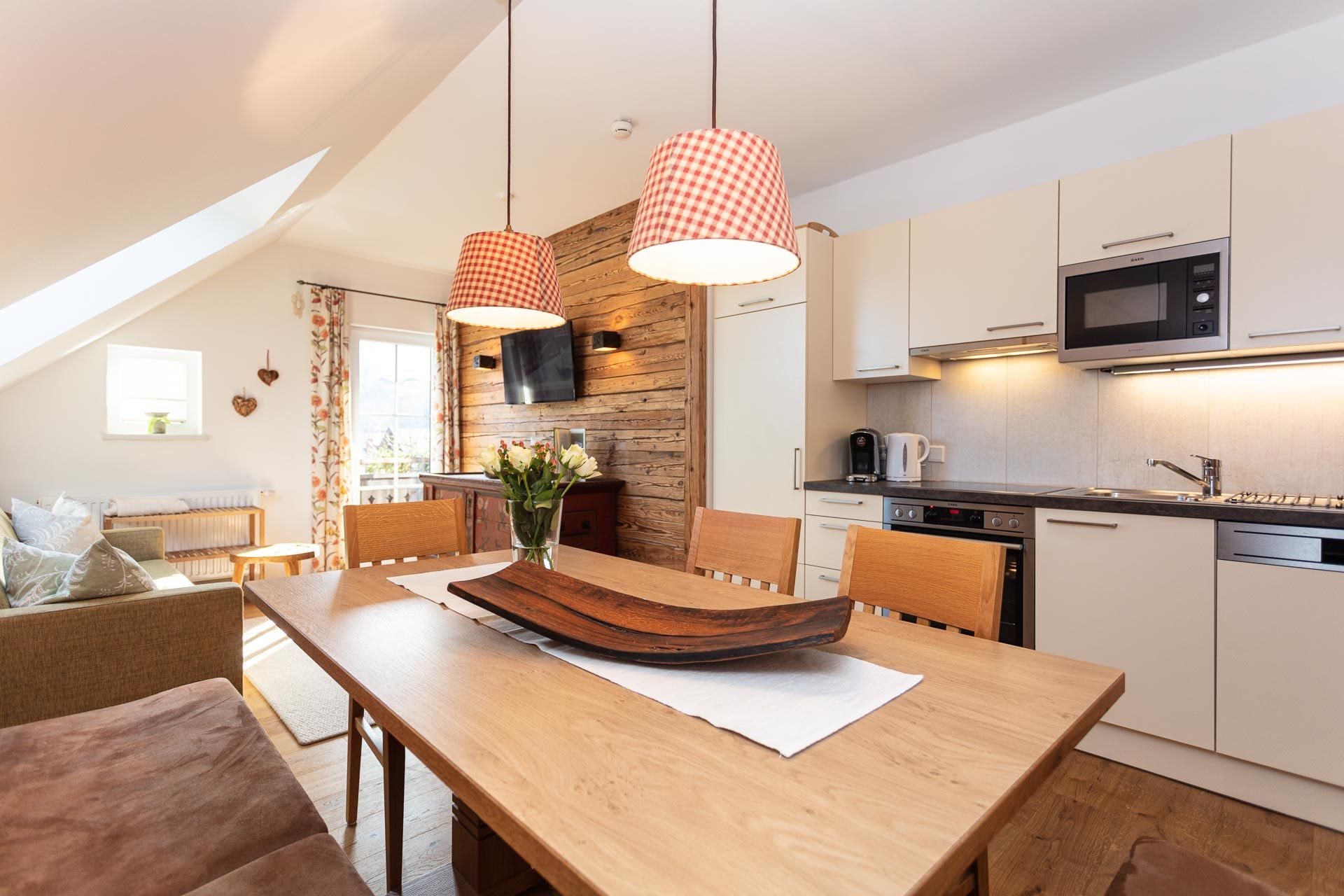 Wählen Sie zwischen drei Ferienwohnungen, die sich zwar in der jeweiligen Größe unterscheiden, jedoch alle gemütlich mit viel Altholz eingerichtet sind und über Komfort wie gratis WLAN, Flat-TV und teilweise Balkon verfügen. Lift gibt es (leider) keinen im Haus!